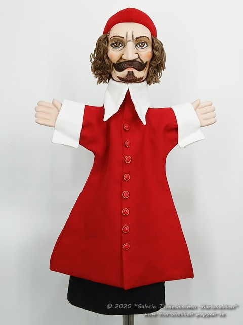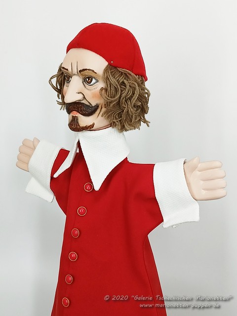 Cardinal Richelieu hand puppet from wood for professional puppeteer for sale.